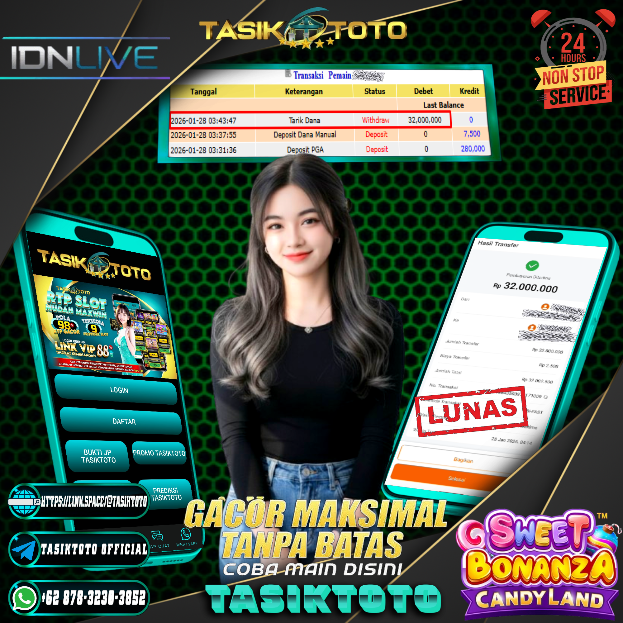 Selamat kepada User Id no**** Telah berhasil mendapatkan kemenangan besar pada permainan SweetBonanza Candyland dengan kemenangan sebesar Rp. 32,000,000,- Setelah mengisi formulir withdraw dengan kurung waktu hanya 5 – 10 menit pihak tasiktoto sudah melakukan transfer kepada pemilik User Id no****