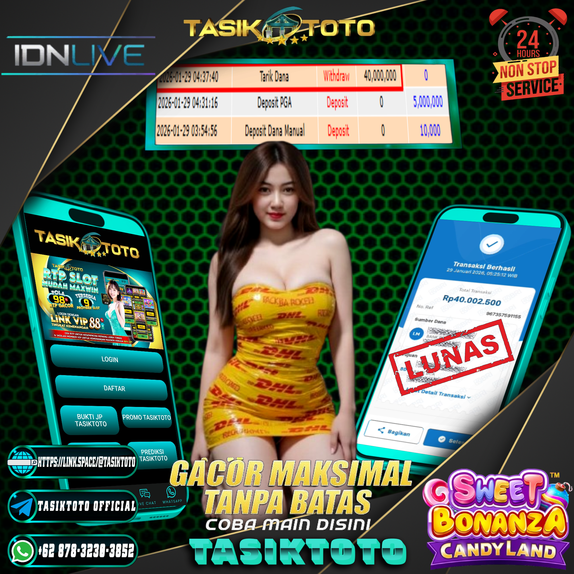 Selamat kepada User Id no**** Telah berhasil mendapatkan kemenangan besar pada permainan Sweet Bonanza Candyland dengan kemenangan sebesar Rp. 40,000,000,- Setelah mengisi formulir withdraw dengan kurung waktu hanya 5 – 10 menit pihak tasiktoto sudah melakukan transfer kepada pemilik User Id no****