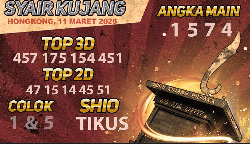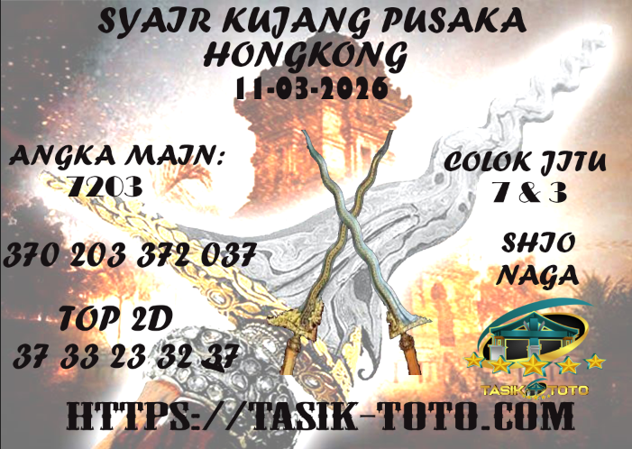 Syair Hk Rabu 11 Maret 2026Prediksi TasikToto hari ini berpatisipasi untuk menyebarkan info syair togel hongkong akurat untuk bettor togelers. Pada umumnya syair togel ini memiliki muatan rangkuman prediksi shio atau ramalan shio yang tujuannya benar-benar berguna bagi beberapa prediktor dalam mendapati angka keluaran dari ramalan angka togel ini.