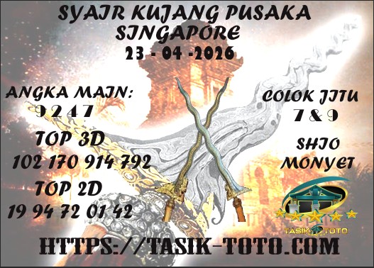 Prediksi TasikToto: Syair Togel Singapore Hari Ini Syair Sgp Kamis 23 April 2026