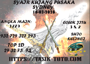 Syair Sdy Senin 16 Maret 2026Prediksi TasikToto hari ini berpatisipasi untuk menyebarkan info syair togel sydney akurat untuk bettor togelers. Pada umumnya syair togel ini memiliki muatan rangkuman prediksi shio atau ramalan shio yang tujuannya benar-benar berguna bagi beberapa prediktor dalam mendapati angka keluaran dari ramalan angka togel ini.