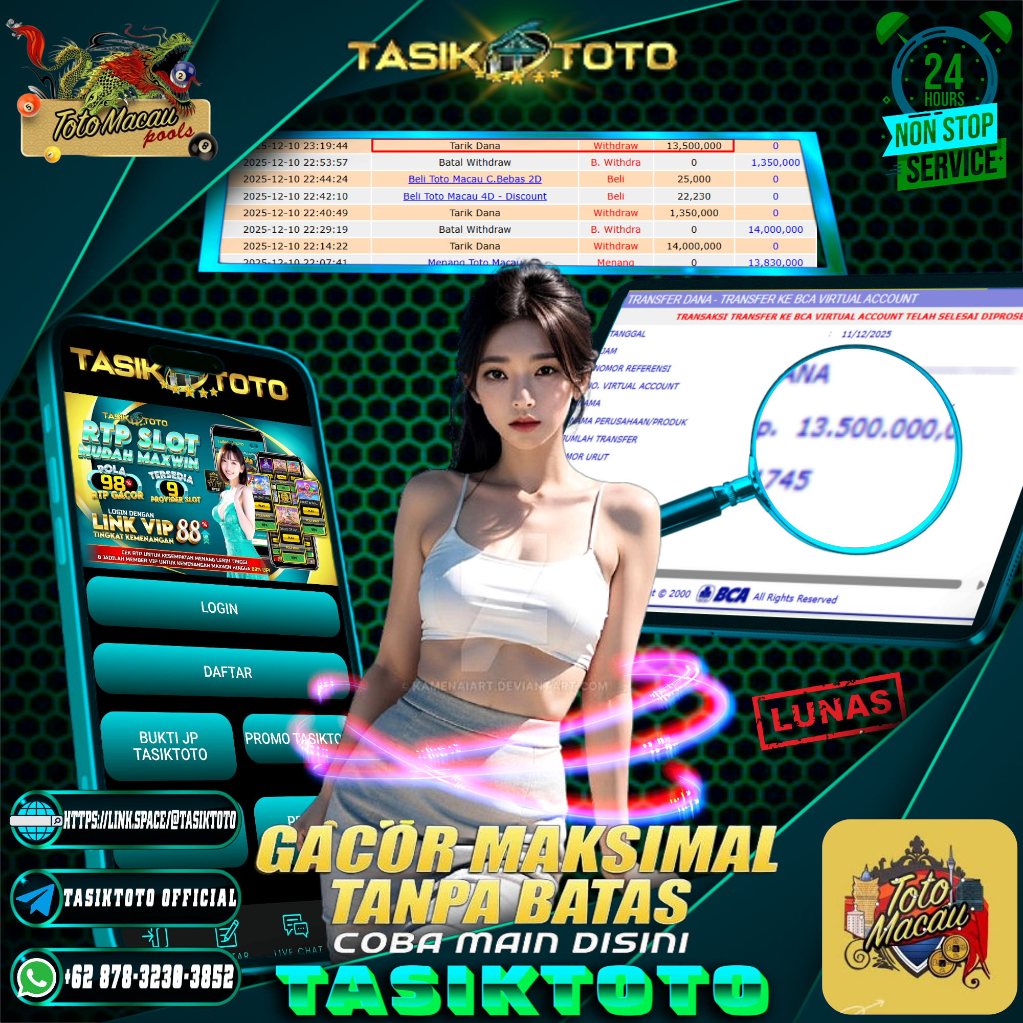 Masih ragu dengan tasiktoto bos ? Di mana bandar togel online sekarang yang terpercaya seperti tasiktoto? Bandar yang mengirimkan kemenangan member tanpa bertele – tele. Jadi…. tidak perlu khwatir pada situs tasiktotokarena kemenangan anda berapapun akan dibayarakan hingga lunas kepada pemenang.