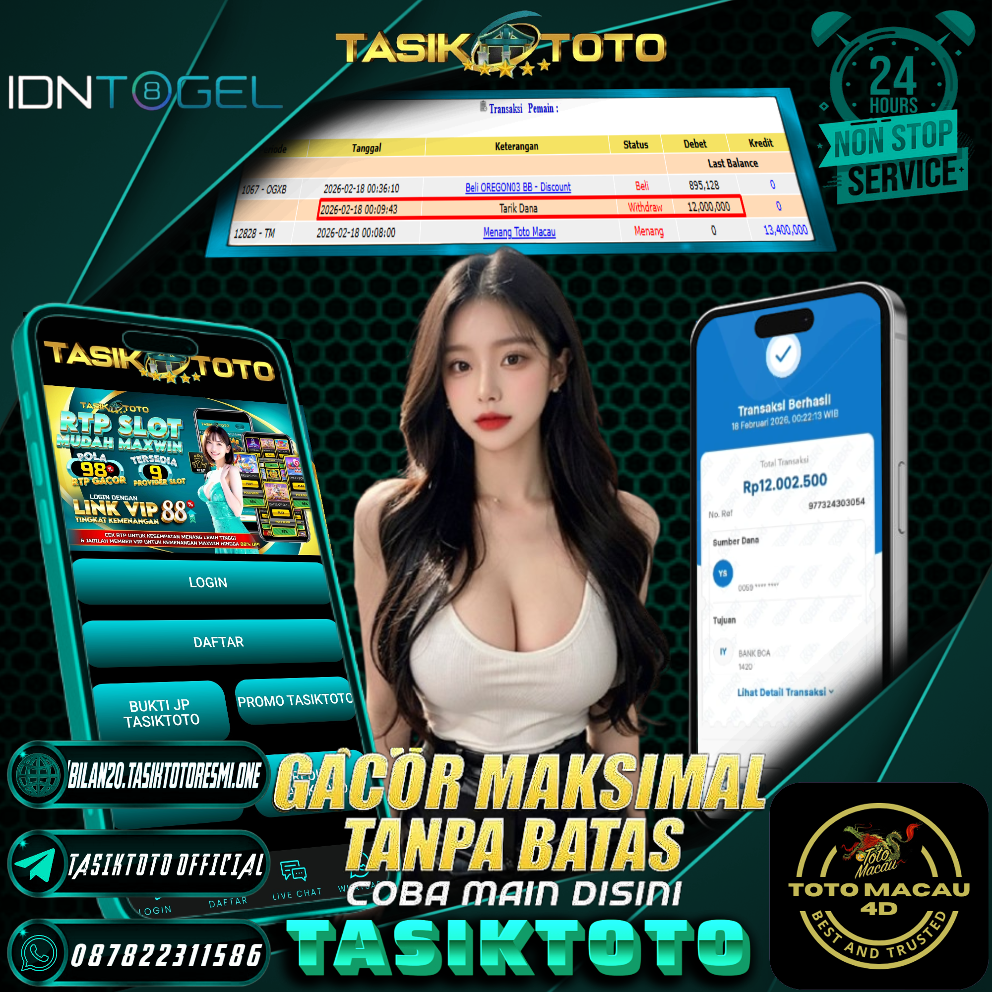 TASIKTOTO adalah Situs Togel Online & Slot Online di Indonesia. Dengan menyediakan berbagai macam permainan yang seru dan menarik di TASIKTOTO maka anda tidak perlu ragu lagi untuk bergabung dan bermain bersama kami situs judi online terpercaya yang akan membayar berapapun kemenangan anda. Hanya dengan 1 User ID anda sudah dapat memainkan semua permainan mulai dari togel, Live casino sampai Slot online yang pastinya seru dan menyenangkan.
