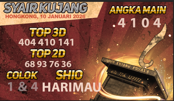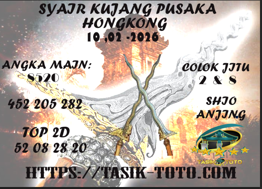 Prediksi TasikToto: Syair Togel Hongkong Hari Ini Syair Hk Selasa 10 Februari 2026Prediksi TasikToto hari ini berpatisipasi untuk menyebarkan info syair togel hongkong akurat untuk bettor togelers. Pada umumnya syair togel ini memiliki muatan rangkuman prediksi shio atau ramalan shio yang tujuannya benar-benar berguna bagi beberapa prediktor dalam mendapati angka keluaran dari ramalan angka togel ini.