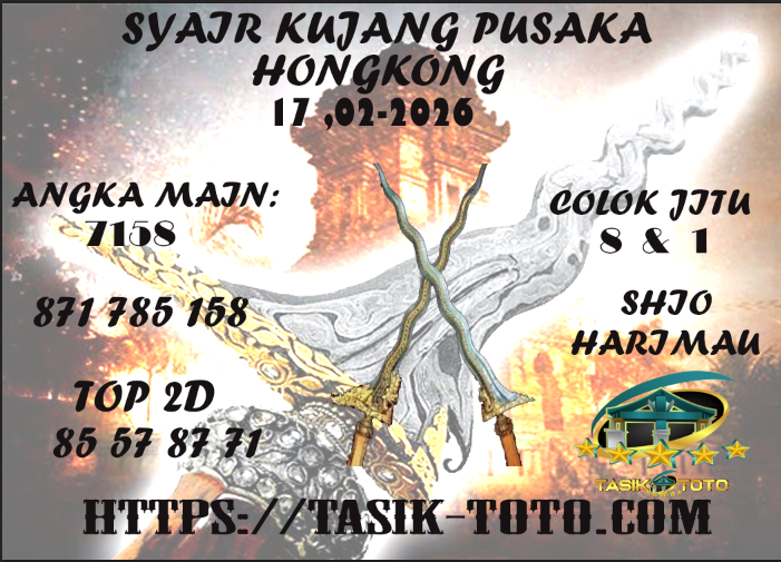 Prediksi TasikToto: Syair Togel Hongkong Hari Ini Syair Hk Selasa 17 Februari 2026Prediksi TasikToto hari ini berpatisipasi untuk menyebarkan info syair togel hongkong akurat untuk bettor togelers. Pada umumnya syair togel ini memiliki muatan rangkuman prediksi shio atau ramalan shio yang tujuannya benar-benar berguna bagi beberapa prediktor dalam mendapati angka keluaran dari ramalan angka togel ini.
