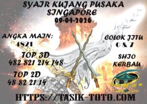 Prediksi TasikToto hari ini berpatisipasi untuk menyebarkan info syair togel singapore akurat untuk bettor togelers. Pada umumnya syair togel ini memiliki muatan rangkuman prediksi shio atau ramalan shio yang tujuannya benar-benar berguna bagi beberapa prediktor dalam mendapati angka keluaran dari ramalan angka togel ini.
