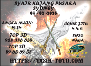 Prediksi TasikToto hari ini berpatisipasi untuk menyebarkan info syair togel sydney akurat untuk bettor togelers. Pada umumnya syair togel ini memiliki muatan rangkuman prediksi shio atau ramalan shio yang tujuannya benar-benar berguna bagi beberapa prediktor dalam mendapati angka keluaran dari ramalan angka togel ini.
