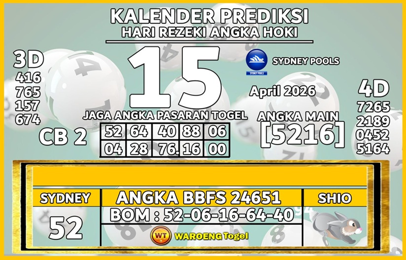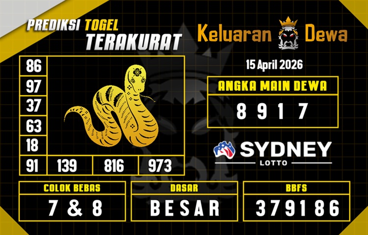 Prediksi TasikToto yang diselenggarakan oleh Prediksi TasikToto juga diperlengkapi dengan kode syair togel sydney yang bisa memudahkan artis membaca prediksi. Jika kamu kagum tergabungan, kamu bisa daftar dan masuk di situs togel resmi TasikToto ketika ini juga di mana suguhkan service daftar mudah dan nyaman.
