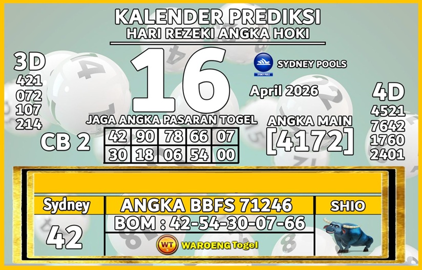 Daftarhon meredam dan coba mereload kembali agar gambar kode syair bisa terlihat. Jika tidak mau menanti lama menyaksikan Bocoran Togel Sydney pada Situs Prediksi Togel sdy terbaik. Karena agama beberapa penganut Komunitas kode Syair sydney itu akan ramalan angka yang mendapati nomor akurat.